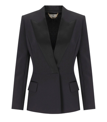 ELISABETTA FRANCHI BLACK BLACK SATIN LAPEL JACKET