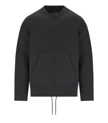 Sweatshirt by Emporio Armani made from mixed modal fabric in black. Characterized by a stitched logo on the front, it has long sleeves & a large open pocket. Equipped with a crew neck. Fit is soft, regular fit.