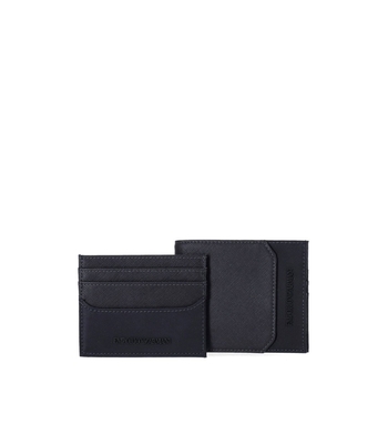 Set by Emporio Armani consisting of a wallet & card holder made from matching blue hammered leather. Decorated with the Emporio Armani logo in tone. Wallet