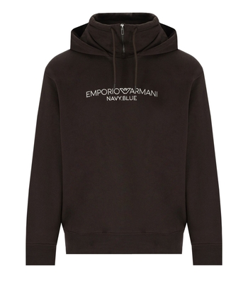 Emporio Armani hoodie made in brown cotton, with contrasting embroidered logo on the front. High neck with drawstring & zip. Ribbed cuffs & hem.
