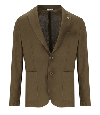 Single-breasted jacket by Manuel Ritz made from mud-colored linen. Revers collar, patch pockets on the front, back slits, & single-breasted closure with buttons. This item has a small fit, we recommend buying one size larger than usual. Composition: 100% linen.
