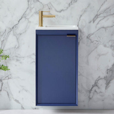 Mobile Bagno Sospeso Blu Marino 400mm Con Lavabo E Maniglia Con