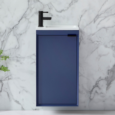 Mobile Bagno Sospeso Blu Marino 400mm Con Lavabo E Maniglia Con