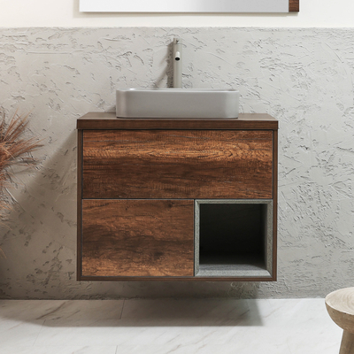 Crea un'oasi di calma e porta spazio nel tuo bagno con il mobile sospeso Hoxton da 800 mm, completo di lavabo da appoggio della gamma Elements. Caratterizzato un design sospeso, questo mobiletto ti offre molto spazio per gli oggetti essenziali del tuo bagno, così puoi mantenere un aspetto ordinato. Il lavabo da appoggio incluso non ha fori per la rubinetteria, quindi puoi abbinarlo a uno dei rubinetti per lavabo a parete o alto Hudson Reed per elevare ulteriormente il look. Abbinalo ad altri articoli delle collezioni Elements e Hoxton per un bagno elegante e coordinato. Caratteristiche: Dimensioni dell' Unità: L 800 mm x P 460 mm x H 636 mm Dimensioni del Lavabo: L 505 mm x P 370 mm H 110 mm Illuminazione a LED con sensore a sfioramento (installabile su entrambi i lati dell'unità) Legno ingegnerizzato certificato FSC resistente all'umidità con finitura testurizzata in rovere scuro Due cassetti con chiusura ammortizzata e apertura a pressione Un ripiano aperto Lavabo in ceramica resistente con fin...