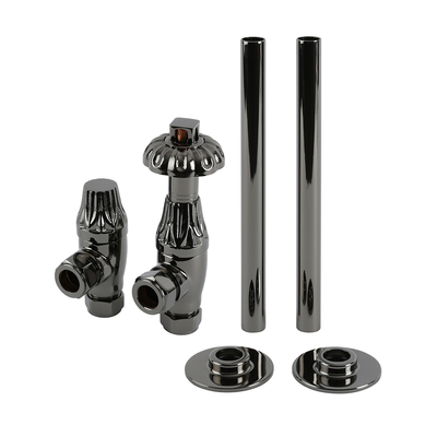 Aggiungi i dettagli finali al tuo nuovo radiatore o scaldasalviette e migliora un look tradizionale con la coppia di valvole termostatica ad angolo per radiatore e il set di raccordi per tubi Regent in nichel nero antico stile antico. Con un design tradizionale combinato con moderna funzionalità di riscaldamento, le valvole del radiatore presentano una finitura in nichel nero e un design in stile antico. La valvola termostatica permette di regolare facilmente la potenza termica di un singolo radiatore, garantendo un maggiore comfort ambientale. Le valvole possono essere utilizzate con tutti i radiatori e scaldasalviette.I raccordi per tubi forniscono il collegamento tra l'ingresso della valvola del radiatore e il pavimento, creando una finitura pulita e ordinata. I tubi in nichel nero creano un look coordinato con le valvole del radiatore. Caratteristiche del set di tubi e valvole del radiatore: Dimensioni: P 34 mm x H 137 mm x L 72.1mm Finitura in nichel nero resistente all'usura Realizzat...