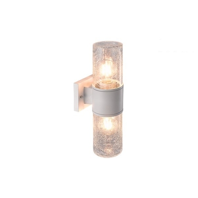 Applique esterno a Cilindro con 2 fasci a 360° di luce con diffusori in vetro, rifiniture in alluminio bianco impermeabile IP54 illuminato da 2 lampadine con Attacco E27 non inclusa nella confezione