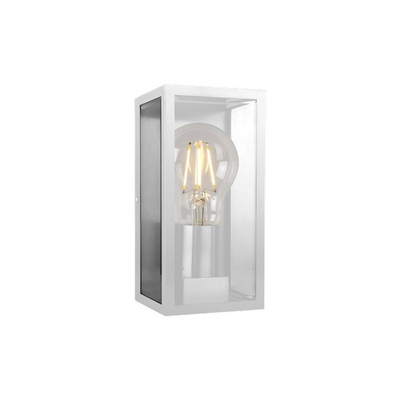 Applique esterno a Lanterna con 1 fascio di luce a 360° con diffusori in vetro, rifiniture in acciaio inox di colore bianco impermeabile IP44 illuminato da 1 lampadina con Attacco E27 non inclusa nella confezione