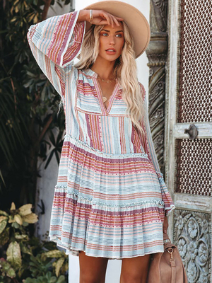 Abiti a trapezio Abito a tunica da donna in poliestere con scollo a V rosso & Abbigliamento Donna > Abiti > Vestito a tubino