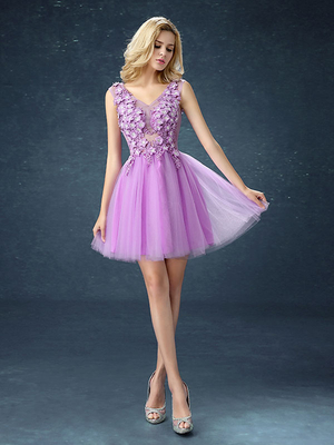 Abiti da ballo 2025 svegli Tutu corto Vestito da laurea lilla Fiori Applique V Neck Mini Party Dress & Matrimonio > Abiti per occasione > Abito da Cerimonia Economico