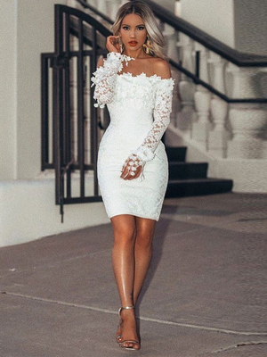 Abiti da compleanno in pizzo bianco con scollo a barca e maniche lunghe in pizzo mini abito casual & Abbigliamento Donna > Abiti > Abiti in pizzo