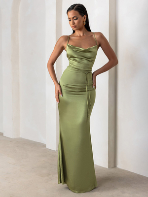 Abiti da damigella d\'onore Abito maxi per festa di matrimonio con spalline aperte sul retro e spacco alto & Matrimonio > Abiti da Cerimonia > Abiti da damigella d'onore > Abito da damigella d'onore lungo ...