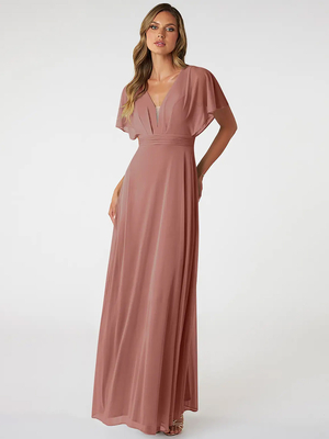 Abiti da damigella d\'onore rosa Abito da promenade in chiffon con scollo a V lungo fino al pavimento & Matrimonio > Abiti da Cerimonia > Abiti da damigella d'onore > Abito da damigella d'onore lungo ...