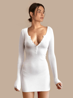 Abiti da donna in maglione Abito a tubino lavorato a maglia con maniche lunghe con scollo a V bianco Abiti casual aderenti & Abbigliamento Donna > Abiti > Vestiti attillati