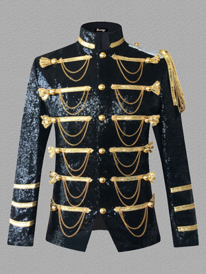 Argento Vintage Top Vintage Paillettes Catene Maniche lunghe Poliestere Fibra di poliestere Soprabito Costumi retrò per uomo & Costumi > Costumi > Costumi Retro > Costumi Retro per Uomo