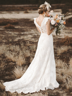 Avorio di pizzo Due pezzi Mit Schleppe semplice & Matrimonio > Abiti da sposa > Abito da sposa in due pezzi