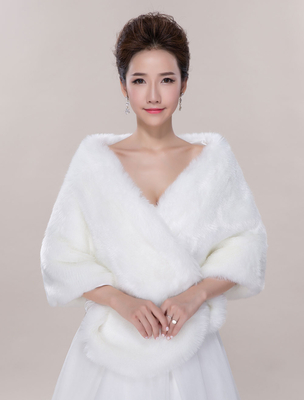 Avorio Sposa Coprispalle Pelliccia senza maniche aperto anteriore scialle da sposa & Matrimonio > Accessori Sposa > Coprispalle per matrimonio