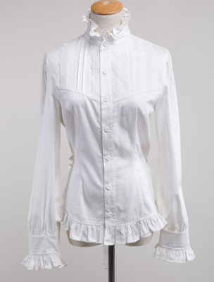 Bianca Lolita Camicetta di Cotone con Maniche Lunghe Volant e Colletto Alto & Abbigliamento Lolita > Lolita Top > Camicette Lolita