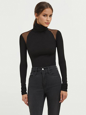 Body a collo alto con spalle in rete manica lunga cavallo con bottoni automatici per donna 2026 & Abbigliamento Donna > Top > Bodysuit