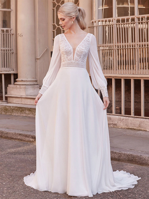 Abito Da Sposa Bottoni Funzionali Maniche Lunghe Scollo A V Avorio