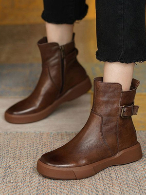 Stivali da donna piatti in pelle PU Stivali da caviglia in punta rotonda & Scarpe > Scarpe Donna > Stivali > Stivaletti
