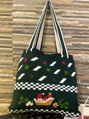 Borse da donna Borse di Natale con doppia maniglia stampate alluncinetto in misto cotone e poliestere & Abbigliamento Donna > Accessori > Borse da Donna