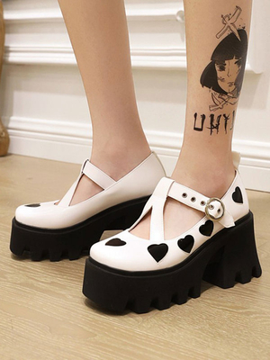 Calzature accademiche Lolita Scarpe Lolita bianche in pelle PU con punta tonda & Costumi > Abbigliamento Lolita > Scarpe > Scarpe Lolita