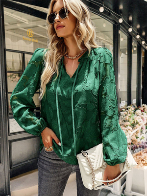 Camicetta per donna Top in poliestere a maniche lunghe casual con scollo a V celeste & Abbigliamento Donna > Top > Camicie & Camicette