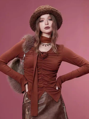 Camicetta plissettata con scollo a V e fiori manica lunga casual per donna 2026 & Abbigliamento Donna > Top > T-shirt