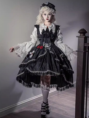Camicette Gothic Lolita con lacci e volant maniche corte camicetta Lolita camicia Lolita bianca & Vestiti Lolita > Camicette Lolita