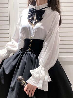 Camicette Lolita accademiche Camicetta Lolita a maniche lunghe con volant Camicia Lolita bianca & Vestiti Lolita > Camicette Lolita