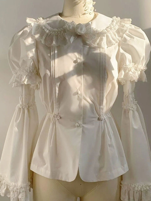 Camicette Lolita accademiche Camicie Lolita bianche a maniche corte con fiocchi pieghettati & Abbigliamento Lolita > Lolita Top > Camicette Lolita