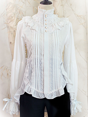 Camicette Steampunk Lolita Camicetta a maniche lunghe in pizzo con fiocchi Camicetta Lolita Top Camicia Lolita bianca & Abbigliamento Lolita > Lolita Top > Camicette Lolita
