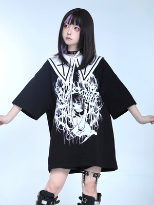 Camicette Steampunk Lolita con volant Maglietta Lolita a maniche corte con stampa floreale Camicia Lolita nera & Vestiti Lolita > Camicette Lolita