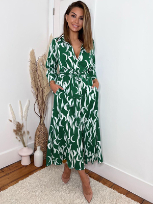 Camicia Abito midi Abito a strati geometrici con maniche lunghe con spacco sul davanti e collo a punta verde & Abbigliamento Donna > Abiti > Vestiti chemisier