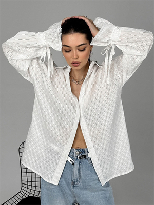 Camicia bianca traforata con maniche lunghe Top primaverili per donna 2026 & Abbigliamento Donna > Top > Camicie & Camicette