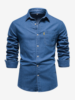 Camicia casual da uomo a maniche lunghe tinta unita vestibilità slim in denim & Abbigliamento Uomo > Magliette & Camicie > Camicie Casual