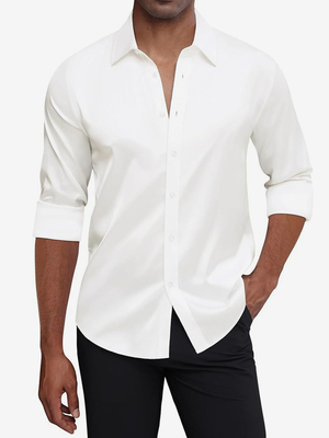 Camicia da uomo a maniche lunghe con bottoni in cristallo elasticizzati vestibilità slim casual da lavoro & Abbigliamento Uomo > Magliette & Camicie > Camicie eleganti ...