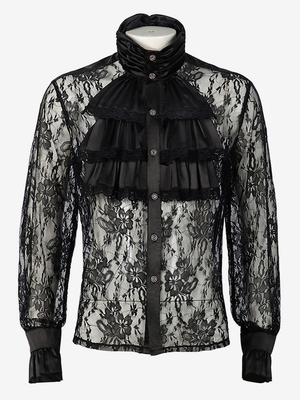 Camicia in fibra di poliestere poliestere a maniche lunghe retrò vintage nera superiore Costumi retrò per uomo & Costumi > Costumi > Costumi Retro > Costumi Retro per Uomo