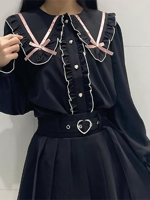 Camicia Lolita con volant e lacci colletto tondo manica lunga & Vestiti Lolita > Camicette Lolita