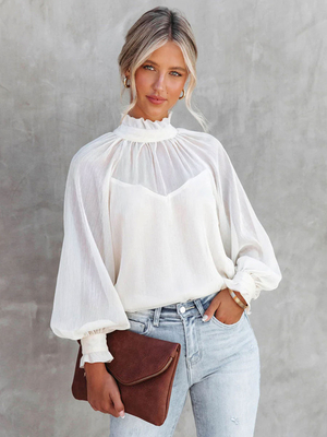 Camicia per donna bianca in poliestere collo alto casual maniche lunghe top & Abbigliamento Donna > Top > Camicie & Camicette