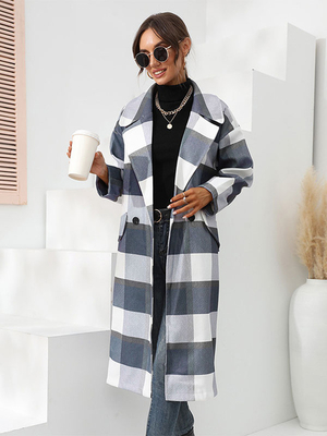 Capispalla da donna Plaid colletto rovesciato Cappotto casual avvolgente grigio chiaro & Abbigliamento Donna > Cappotti > Cappotti da Donna