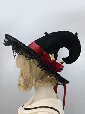 Cappello Lolita nero Cappello da strega Fiocco in pizzo Accessori Lolita in poliestere & Costumi > Abbigliamento Lolita > Accessori Lolita > Cappelli Lolita ...