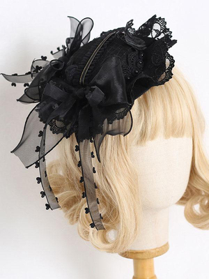 Cappello Steampunk Lolita Fiocchi neri Volant Accessorio in pizzo Accessori Lolita in poliestere & Vestiti Lolita > Accessori Lolita > Cappelli Lolita