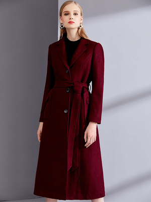 Cappotti avvolgenti in lana bordeaux con grandi tasche collo a tacca classici con cintura capispalla midi invernali per donna 2025 & Abbigliamento Donna > Cappotti > Cappotti da Donna