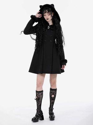 Cappotti Gothic Lolita Cappotto soprabito in poliestere nero Cappotto Autunno Lolita Outwears & Vestiti Lolita > Cappotto Lolita