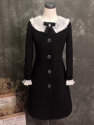 Cappotti Gothic Lolita Fiocchi Neri Soprabito in Poliestere Cappotto Autunno Lolita Capispalla & Abbigliamento Lolita > Giacche > Lolita Cappotto ...