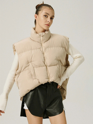 Cappotti invernali Albicocca chiara Design alto basso Colletto alla coreana Cerniera senza maniche Cappotto invernale casual Capispalla & Abbigliamento Donna > Cappotti > Cappotti Invernali