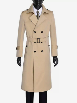 Cappotto Alla Moda Da Uomo In Stile Pisello Doppiopetto Color Cachi