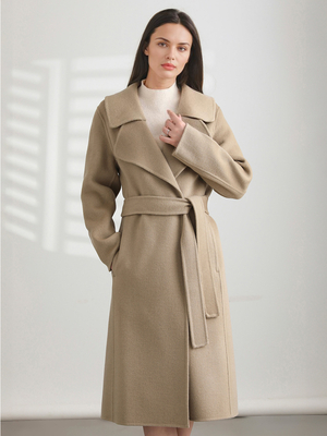Cappotto avvolgente in misto lana e cashmere con cappuccio double-face cammello con cintura invernale per donna 2026 & Abbigliamento Donna > Cappotti > Cappotti da Donna ...