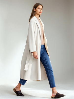 Cappotto avvolgente in lana classico con risvolto a tacca e cintura invernale midi per donna 2025 & Abbigliamento Donna > Cappotti > Cappotti da Donna ...